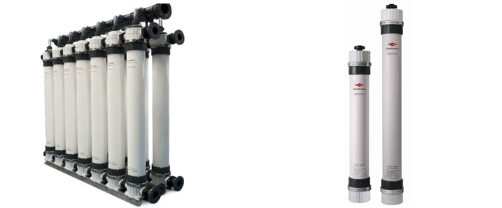 美国陶氏系列超滤膜组件,采用聚偏氟乙烯 (PVDF) 材料,并经亲水性处理,可长期耐受高浓度的氧化剂,充分抑制微生物繁殖。在工业应用的PVDF材料超滤膜组件中,DOW系列超滤膜组件具有较小的公称直径(0.03um),能够去除几乎所有的微粒、细菌、大多数病菌以及胶体;其极高的孔隙率使得DOW系列超滤膜组件能够获得和微滤相当相近的通量,因而在大多数情况下是比微滤更好的选择。