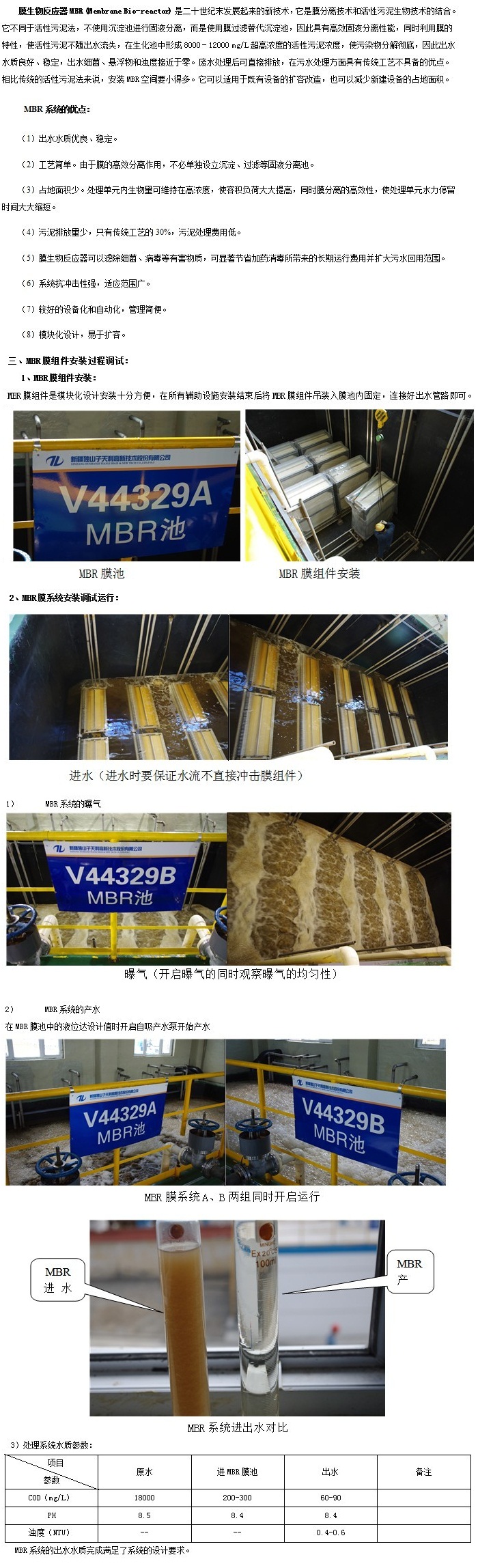 新疆独山子天利高新MBR系统投运时间:2012-09-07